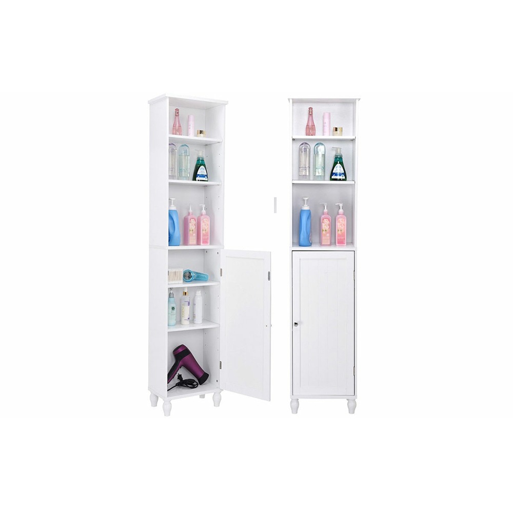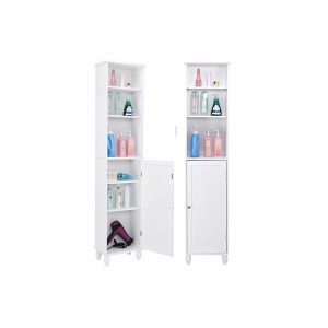 Equipped with 3-shelves provide plenty of room to storage your items and a door with silver metal handle knob can keep your personal item safe.