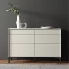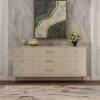 AASHNA Dresser combines luxury and convenience with its crisp rectangular shape, gold accented frame, 6 drawers, and gold handles. Made with strong wood, manufactured wood, and stainless steel legs, it adds function and elegance to any space.