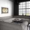 This gray upholstered Ceasar sectional sofa will bring you a modern and comfortable sensation in the living room. Featuring track arms, loose back and seat cushion, squared legs, and multi-function ottoman that can transform the sofa into a sectional or chair into chaise. Presenting you with a cozy environment for entertaining friends and family.