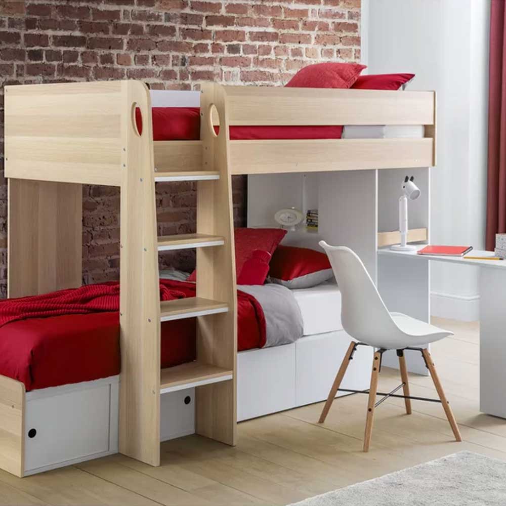 Home Mart Alexei Single Bunk Bed with Built-in-Desk
