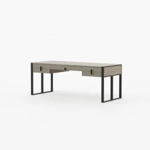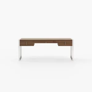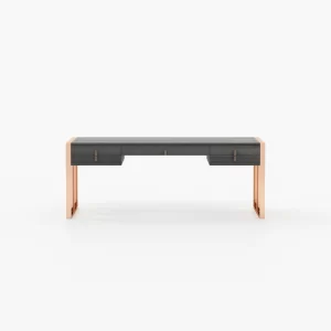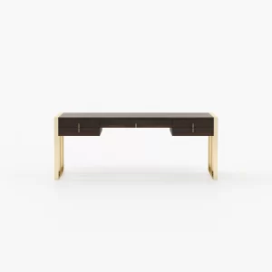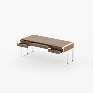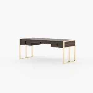 The table has enough height and space to provide relaxed positioning of legs while you sit and work on it. Contemporary look wood office desk boasts a modern and bold look, suitable for all contemporary setup. The table is provided with a cable snake for an efficient wire management to allow you to work in a clutter-free space. Enhanced privacy the desk organiser comes with a lockable storage compartment to secure your private and confidential belongings. A slim dark desk is carefully curated to blend in with the overall decor. The fireplace and the oversized pouf are eclectic yet warm home accessories in a highly glamorous space.