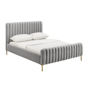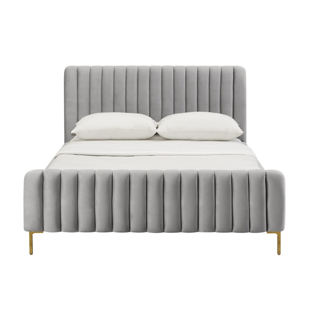 Home Mart Angela Channel Tufted Velvet Bed in Grey