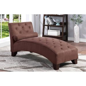 This Arched Frame with Accent Tufting Upholstered Chaise Lounge creates a chic style, It featuring accent tufting from the head support to the bench. it comes in Ebony (Charcoal), chocolate, or Grey Microfiber. Each unit includes short wide legs, high back support and a cylinder pillow.