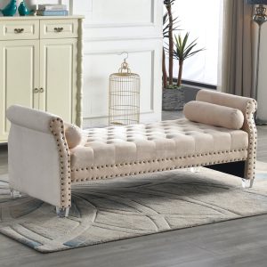 The perfect versatile choice for seating and style, this velvet bench grabs your attention thanks to tufting and nailhead trim accents. The acrylic legs allow for light and glamor to shine through; while the sequin upholstery sparks up the conversation. Its unique design makes for an eye-catching, statement piece. it an ideal piece for the end of your bed, walk-in closet, or living room to host either visitors or decorative throws.