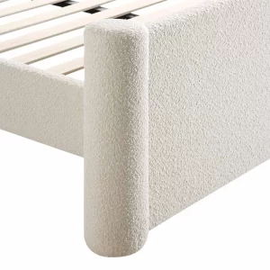 Upholstered in textured beige boucle fabric, it offers a touch of elegance and sophistication. The solid hardwood slatted base ensures stable support for your mattress, while the hardwood and metal internal frame guarantees durability.