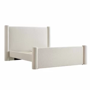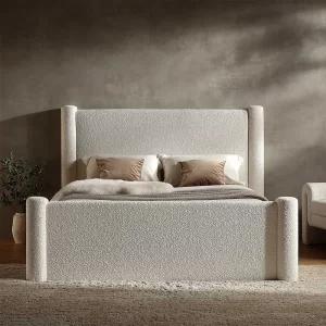 Inspired by classical architecture, our magnificent Athena Boucle Upholstered Bed features a striking design with a rectangular headboard and footboard complemented by bold column pillars. This generously sized bed is sure to become a statement piece in any bedroom.
