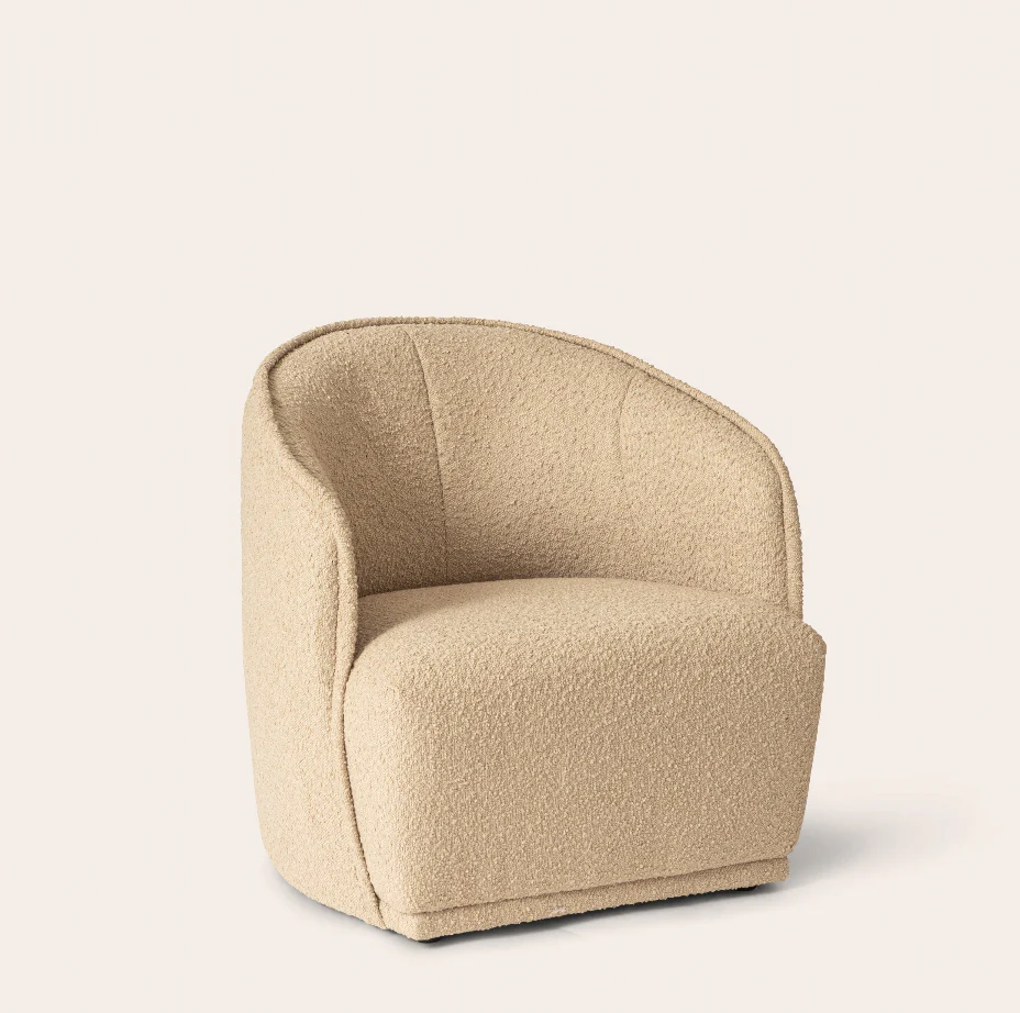 Upholstered in a textured bouclé fabric, our Bouclé Chair is a timeless piece inspired by our favourite mid-century designs. Understated luxury is found in the simple curves which are complimented by the fabric piping detailing.