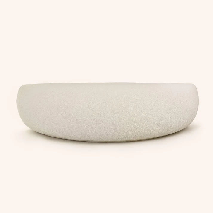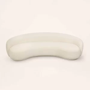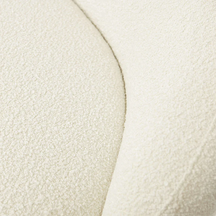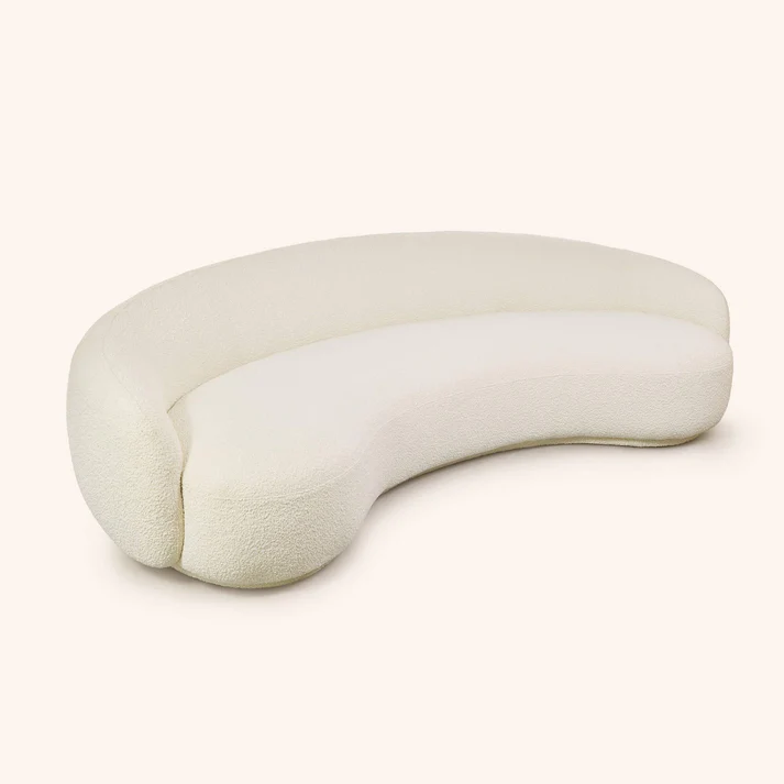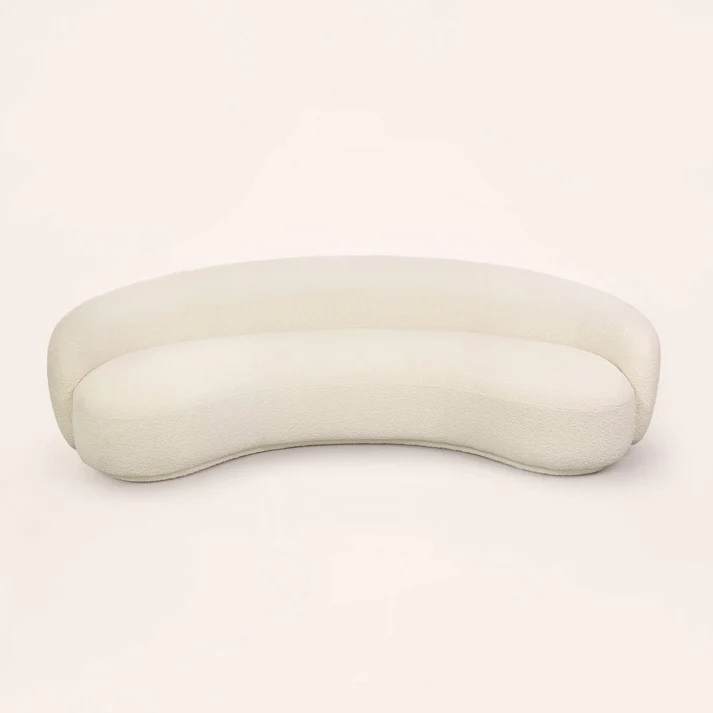 A luxe take on mid-century design, the Bouclé Curved Sofa features a soft curved silhouette. A modern yet elegant addition to a living room, the sofa is fully upholstered in our off-white textured bouclé.
