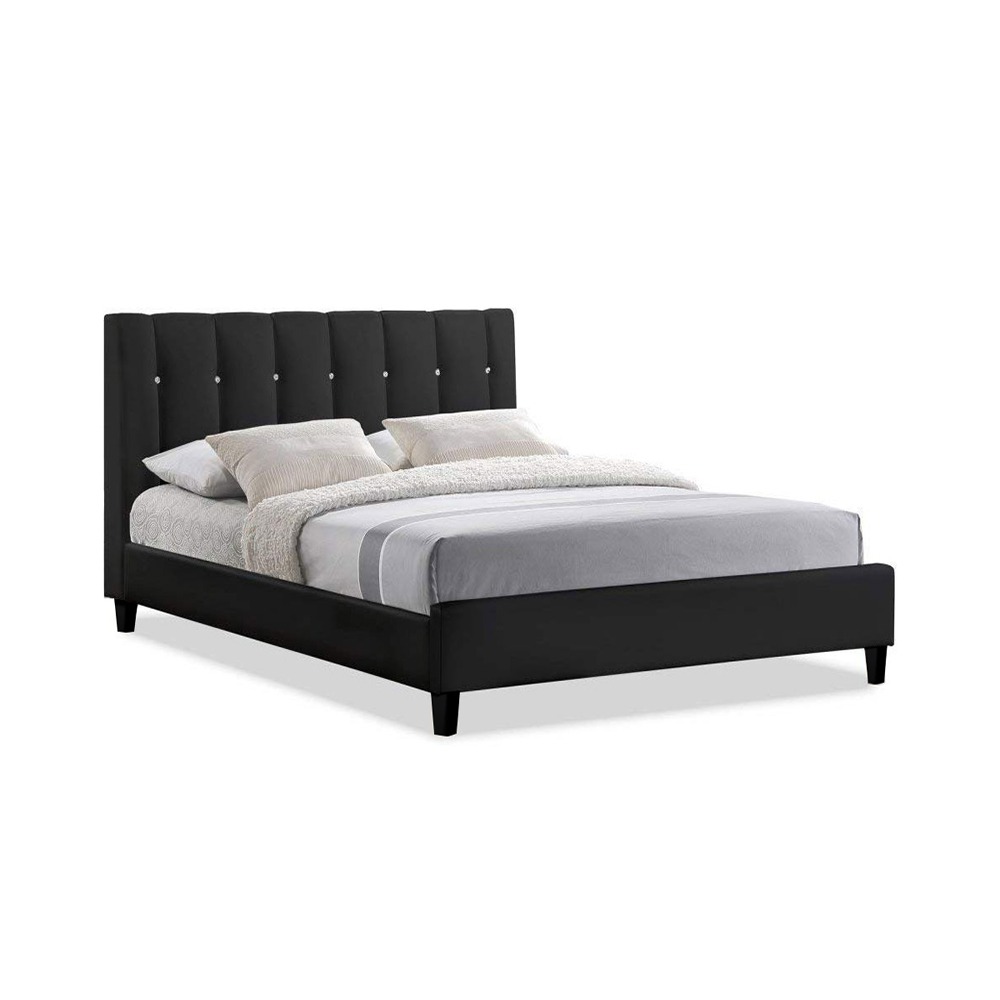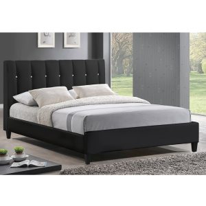 Get a good night’s sleep in the sophisticated Modern Vino Bed. The modern bed frame is constructed with solid rubberwood, padded with foam, and upholstered with black & white faux leather. Glittering faux crystal buttons dot the headboard for a touch of regality.