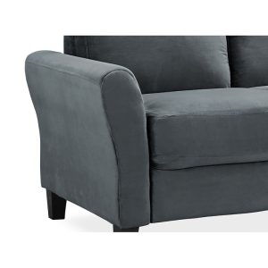 Celestia Flared Arm Sofa is a lovely curved arm stationary sofa that offers the perfect place for family, friends, or casual acquaintances to rest, relax, and recharge. The wooden frame offers only the finest protection from all manner of bouncing or jostling that furniture unfortunately gets. The premium Dark Gray fabric upholstery provides ultimate comfort and style to your living space.