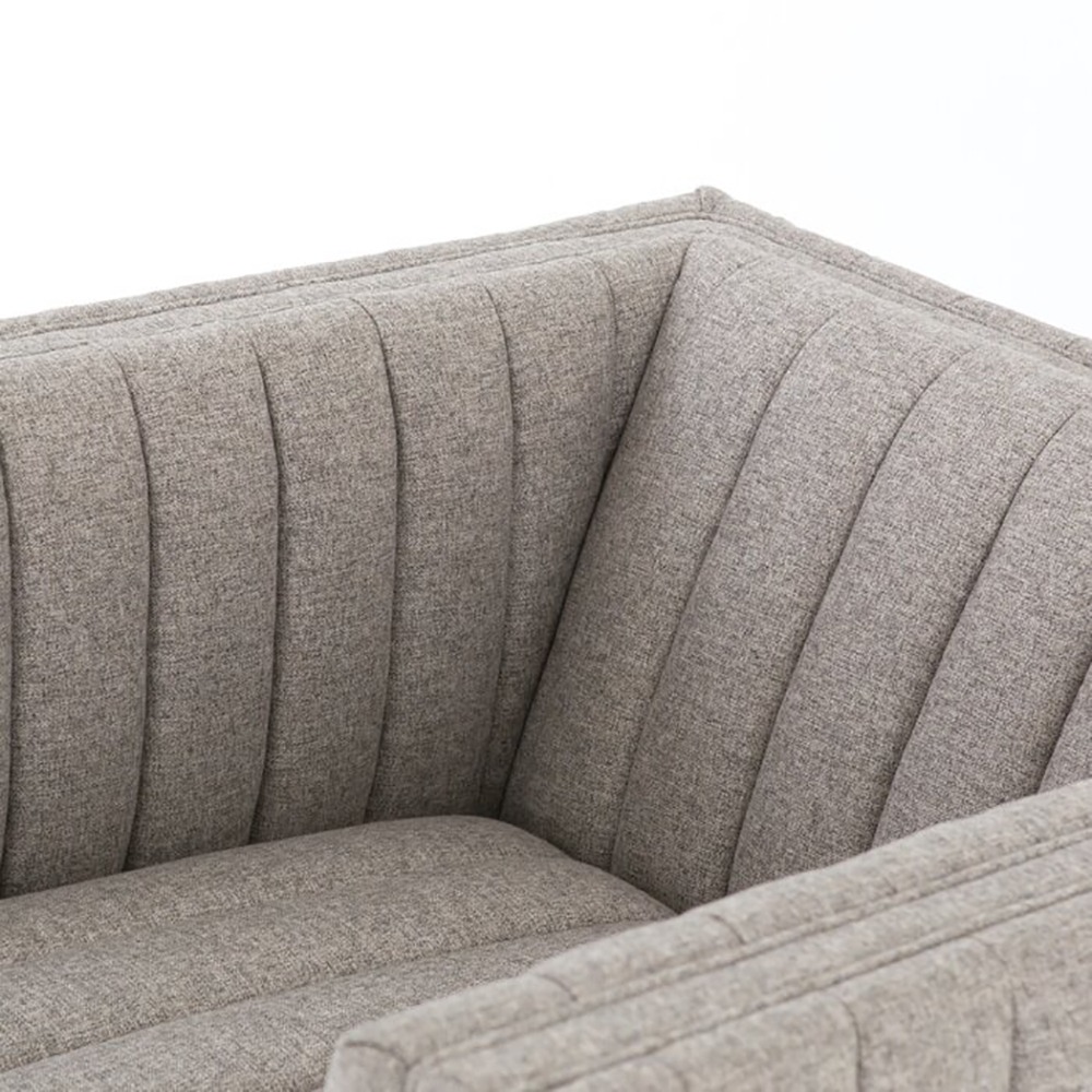 A modern take on classic library chair, neutral seating with subtle herringbone pattern adopts dramatic channeling for trend-forward texture and sumptuous sit. New feature amps up a fresh appeal from every angle. Bring home the chic style of this? Accent Chair. This chairs sloping arms and thick reversible seat cushion with sinuous no-sag springs. Highlighted by double material, this chair will add comfort and beauty to any room.
