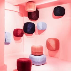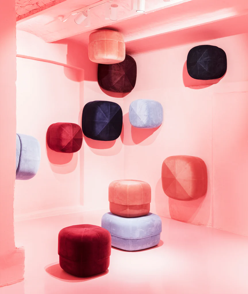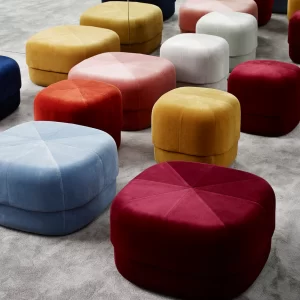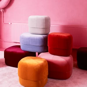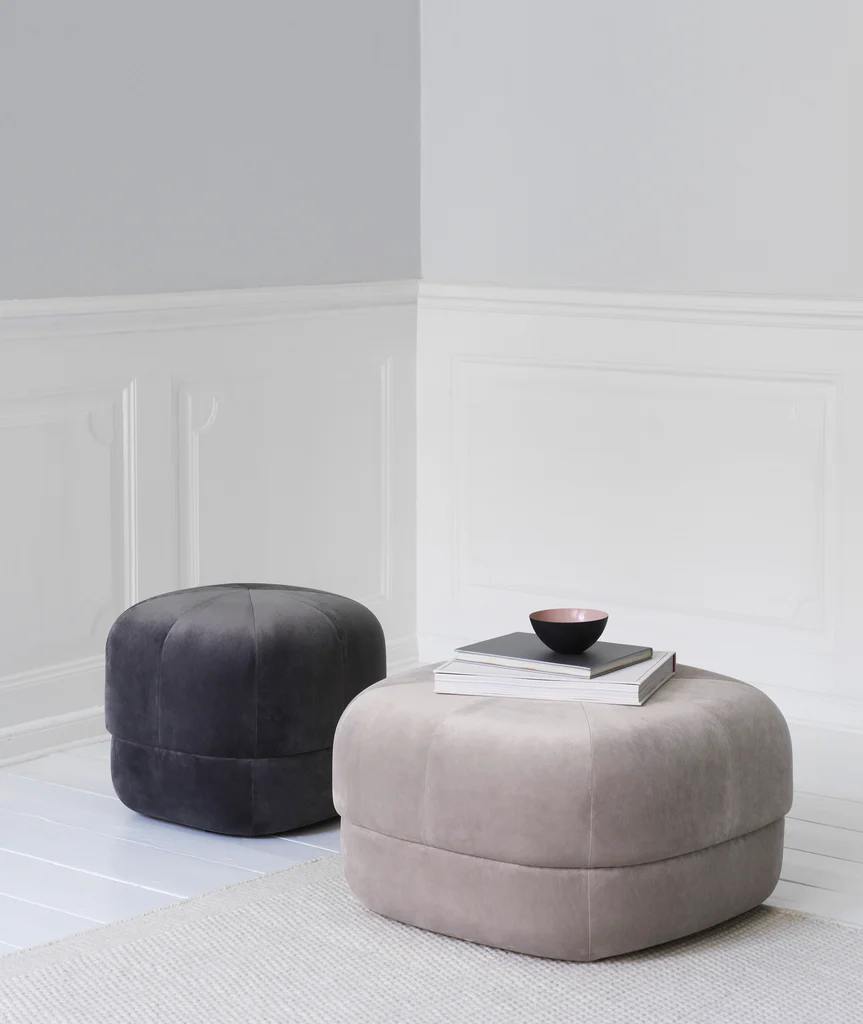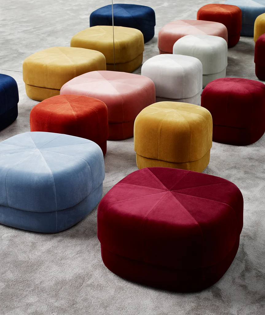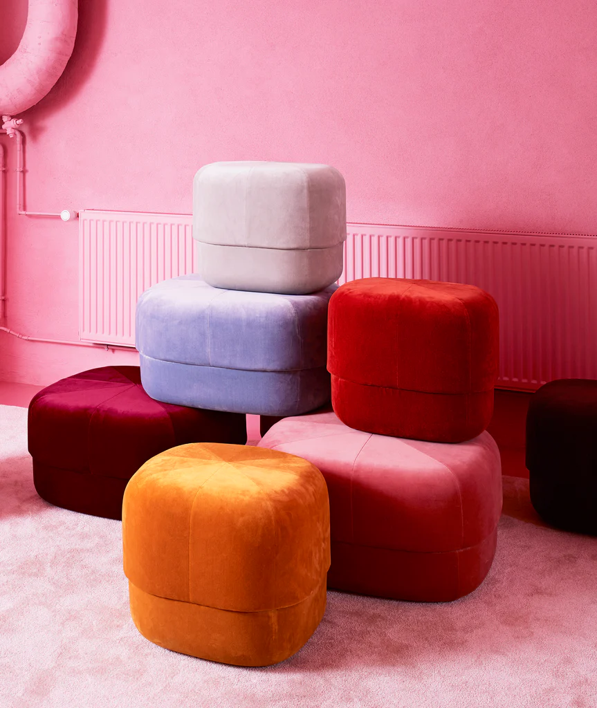 Give your home a pop of color with the Circus pouf; a versatile furniture piece in an exclusive, Scandinavian design. With its rounded shape and clean, graphic lines the Circus is a modern interpretation of the antique Moroccan leather pouf. The pouf allows contradictions to meet in a design whose style is stringent and minimalist, while at the same time having a soft and inviting expression. The Circus pouf consists of two different types of foam; firm foam to maintain the shape of the bottom part of the pouf and softer foam on the upper part for great seating comfort. Circus is a multi-functional piece of furniture and can, for example, be used as an extension for your sofa, as a seat for a coffee table or as a decorative seat in the bedroom. It is available in soft and luxurious closely woven velour in a range of saturated colors, great for adding depth, texture and warmth to the interior