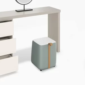 - Comfortable vanity stool conveniently tucks away under the vanity, helping to save space in your room.