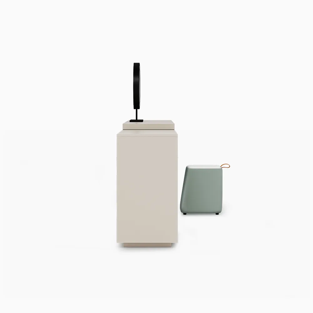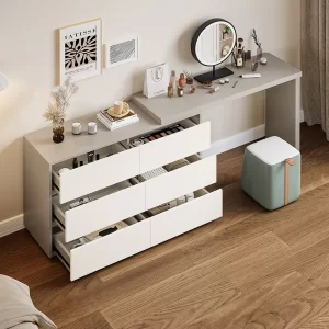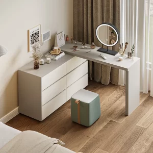 - A slide-out dressing table with the clever disguise of a cabinet.