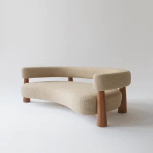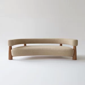 With neutral, organic hues and a concave, open back, the Cove Settee welcomes ease into any space without sacrificing style. Standard Materials: Oak, Dark-stained Oak, Â Custom materials, dimensions and finishes available |