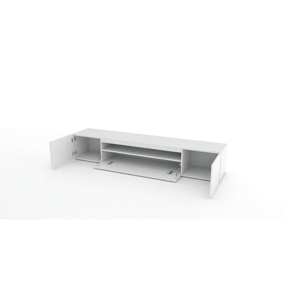 Cribbs TV Stand provides a rectangular shape and has two or three cabinets (depends on a size you prefer) for storing items you use each day. The top accommodates a wide variety of television sets of differing widths with ease. In the center of the unit is a small shelf that accommodates gaming consoles, DVD/Blu-ray Players, and live streaming devices.