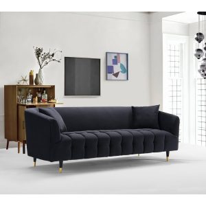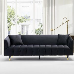 Velvet Round Arm Sofa is a comfortable, trendy sofa that straddles the space between modern and contemporary design. A sight to behold, this sofa features a channel-quilted button cushion and shelter arms upholstered in luxurious velvet, works great as a standalone piece, or pairs beautifully with the club chair from the same collection. Lends itself to the living room, lounge, den, and office spaces with modern and contemporary design styles.