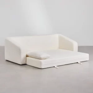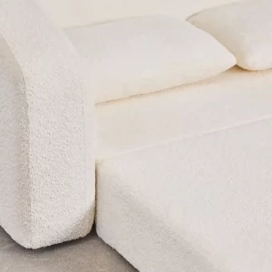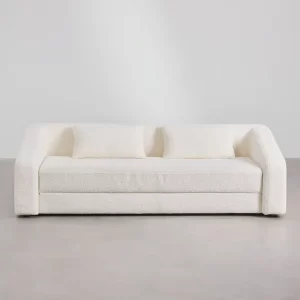 Presenting the Dalila 3-seater sofa bed in bouclé fabric—a stylish addition that seamlessly blends form and function. Its minimalist lines and enveloping curves create a sophisticated look, making it a perfect choice for those who desire elegance without compromising on utility. The polyester upholstery with a bouclé finish adds a unique, cozy touch that enhances any living room or guest room.