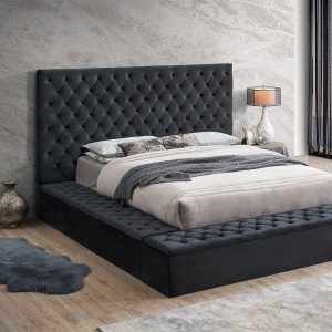 Your bedroom deserves a Tufted Upholstered Bed that will stand the test of time in a world full of trends. We?re confident that the Better Home Products Empress Velvet Upholstered Platform King Bed with extra-large headboard can do just that. With its classic button-tufted padded upholstery available in a variety of neutral shades this bed promises to enhance whatever look you?re going for. In addition to its undeniable style, Empress is about as reliable and supportive as they come. Its engineered wood slat platform is ingeniously designed to hold up your mattress with no need for a box spring. Buy Upholstered Storage Bed.?