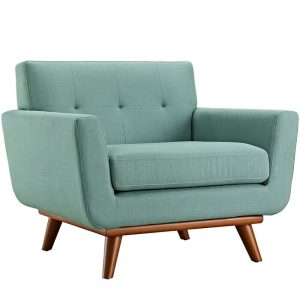 Kick back and relax in retro style with this streamlined arm chair, complete with a matching ottoman so you can rest your feet or set down snacks as you sit. Taking cues from mid-century modern designs, each piece is founded atop four splayed legs in a warm medium cherry finish. Crafted with a solid rubberwood frame, each piece is padded with foam and upholstered with polyester-blend fabric in a solid hue. Tufted details dot the back of the chair for a tasteful touch of texture