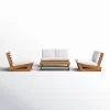 Invite your circle over for a weekend chillout that inspires interesting debates and a lot of laughter in the comfort of your backyard. Featuring wide seat panels and legs that angle outwards, this six-seater chat set with coffee table will be a perfect addition to any garden lounge. The wing-like structure offers extra space on either side of the seat cushion for a unique design & a place for your tea. With solid wood frames and plush outdoor cushions, this set provides hours of conversation for you and your guests.