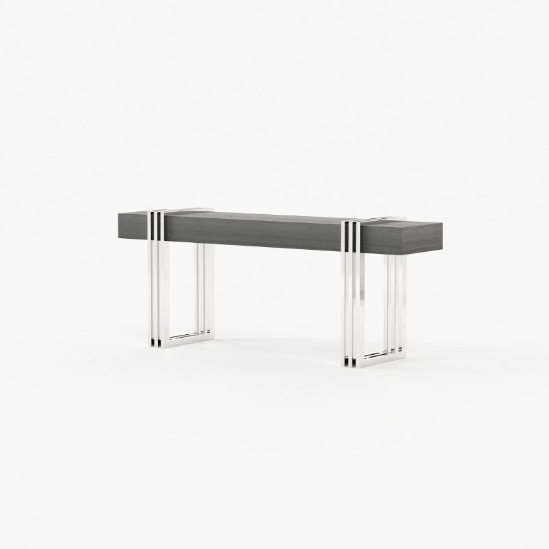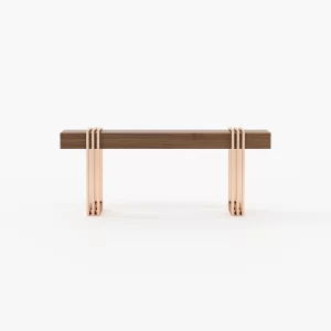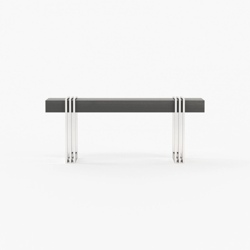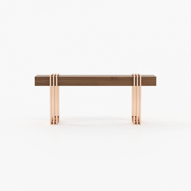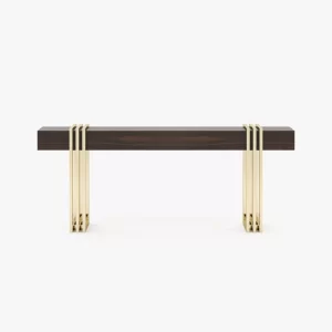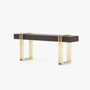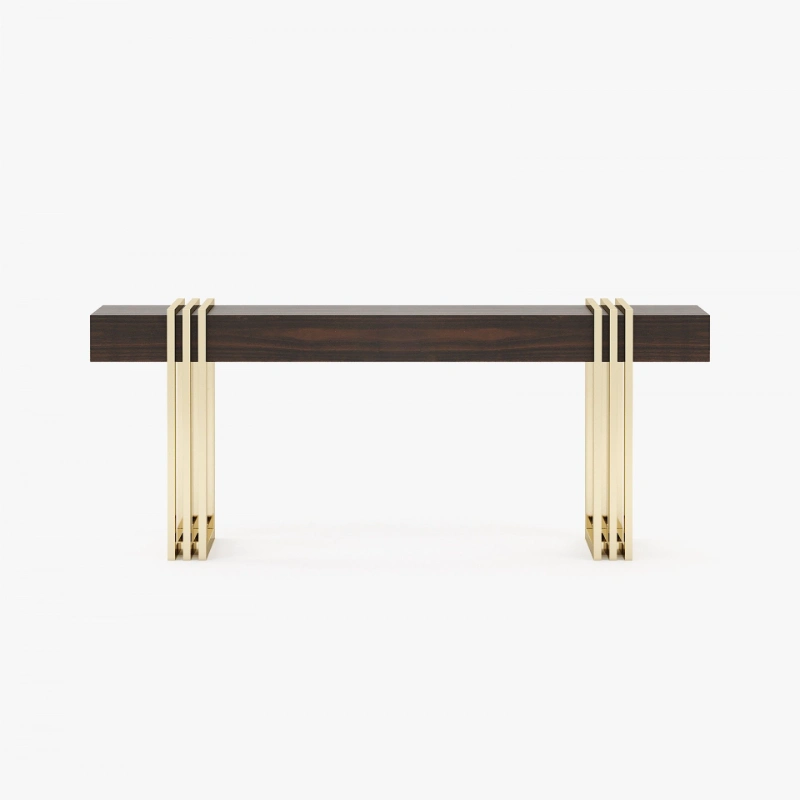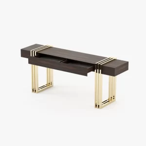 Meticulously designed, this is a charming hall with a distinctive style. By mixing soft textures and high-end finishes you’ll create a timeless decor with warm minimalism. The Aire entrance hall reimagines the design of classic reception areas. At the entrance of this contemporary home, the mirror, the console, the table lamp and the pouf create a spectacular atmosphere enhanced by an extravagant revolving door.