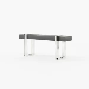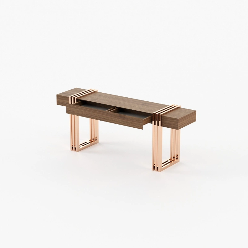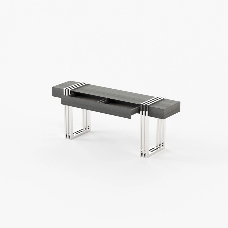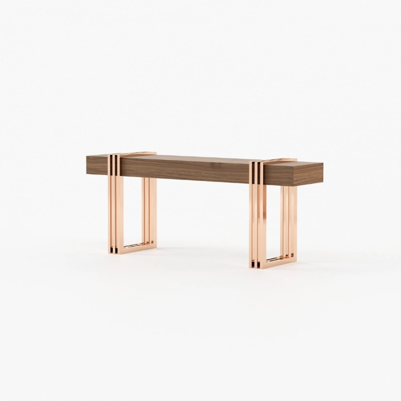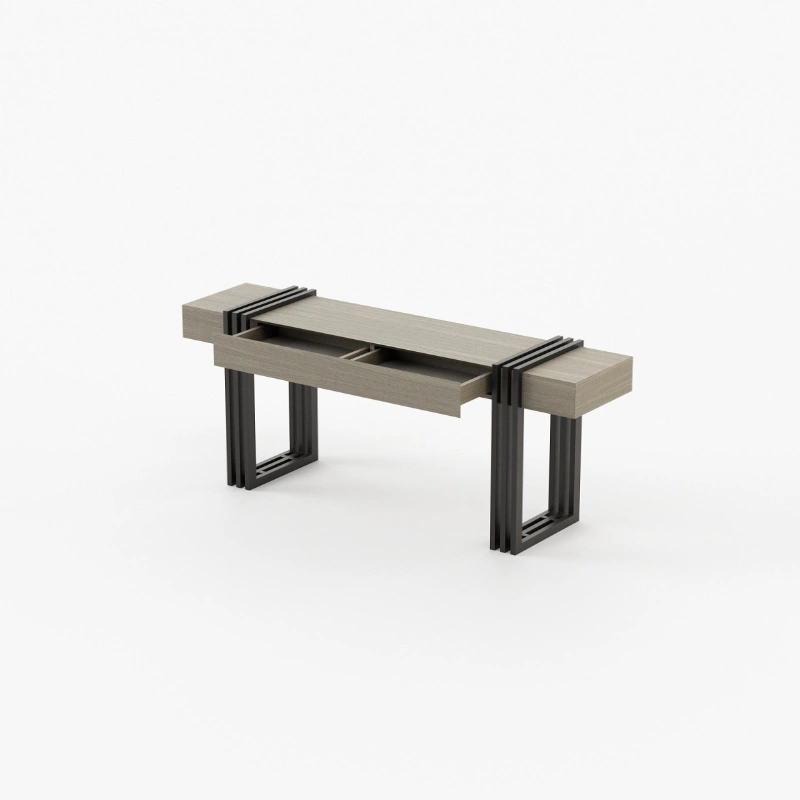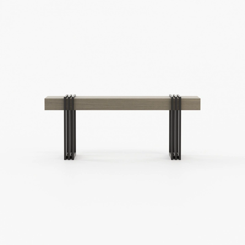 Meticulously designed, this is a charming hall with a distinctive style. By mixing soft textures and high-end finishes you’ll create a timeless decor with warm minimalism. The Aire entrance hall reimagines the design of classic reception areas. At the entrance of this contemporary home, the mirror, the console, the table lamp and the pouf create a spectacular atmosphere enhanced by an extravagant revolving door.