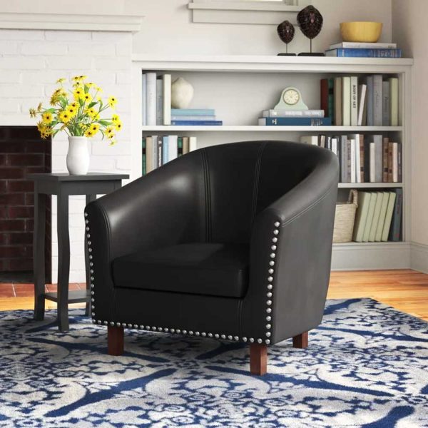 This Tub Chair is the perfect blend of traditional comfort and modern style, making it an excellent addition to any home. Available in a choice of colors to suit your existing décor, this chair will bring a touch of sophistication to any room. The classic design features a streamlined silhouette, stud detailing, and faux-leather upholstery that adds a touch of elegance to its surroundings.
