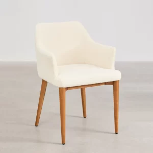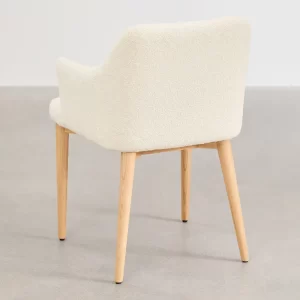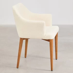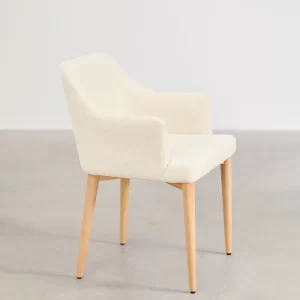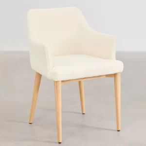 Give your dining room a modern touch with this chair that perfectly combines style and comfort. The Feodora Dining Chair  with armrests has an elegant and minimalist design, ideal for any type of decoration. Its 100% polyester upholstery provides a feeling of warmth and comfort. The curved armrests not only give it a touch of modernity, but also offer great support. The backrest and seat are made with an internal iron structure , providing the durability you need for any daily use. In addition, the 34 kg/m³ density foam padding ensures a high level of comfort, allowing you to enjoy long meals and meetings without any worries. The legs are made of ash wood , which adds a natural touch that contrasts perfectly with the upholstery. These also include plastic pads to protect the floor and prevent slipping.