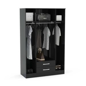 Transform your bedroom into a stylish and modern oasis with the Lincoln bedroom wardrobe. This collection boasts a black finish for a sleek look, combined with bold silver detailing for a touch of sophistication. The combination of these elements creates a contemporary atmosphere in any room. Whether you’re looking to upgrade your existing decor or start fresh, the Lincoln bedroom wardrobe is the perfect choice for those seeking a modern and sleek look. Upgrade your bedroom with this contemporary collection today!