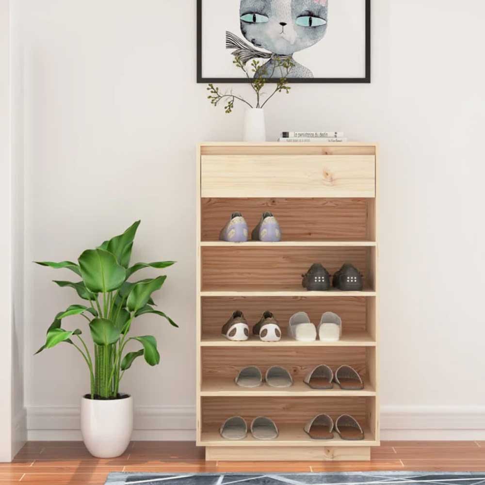 Store your favorite footwear in style with this solid pinewood shoe cabinet. The wooden construction provides stability and durability, ensuring that your shoes remain well-organized and within reach.