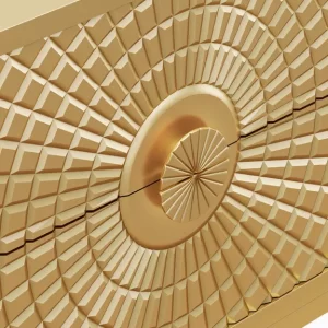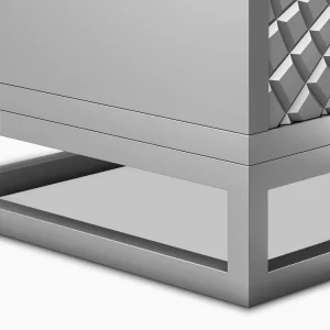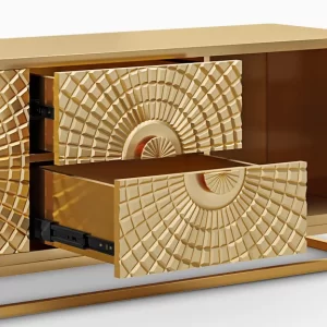 This stunning TV stand features an intricate geometric design on its doors, creating a striking focal point in any room. The golden finish adds a touch of luxury and elegance, making it not just functional but also a piece of art. With ample storage space inside, it combines beauty with practicality perfectly for modern living spaces.