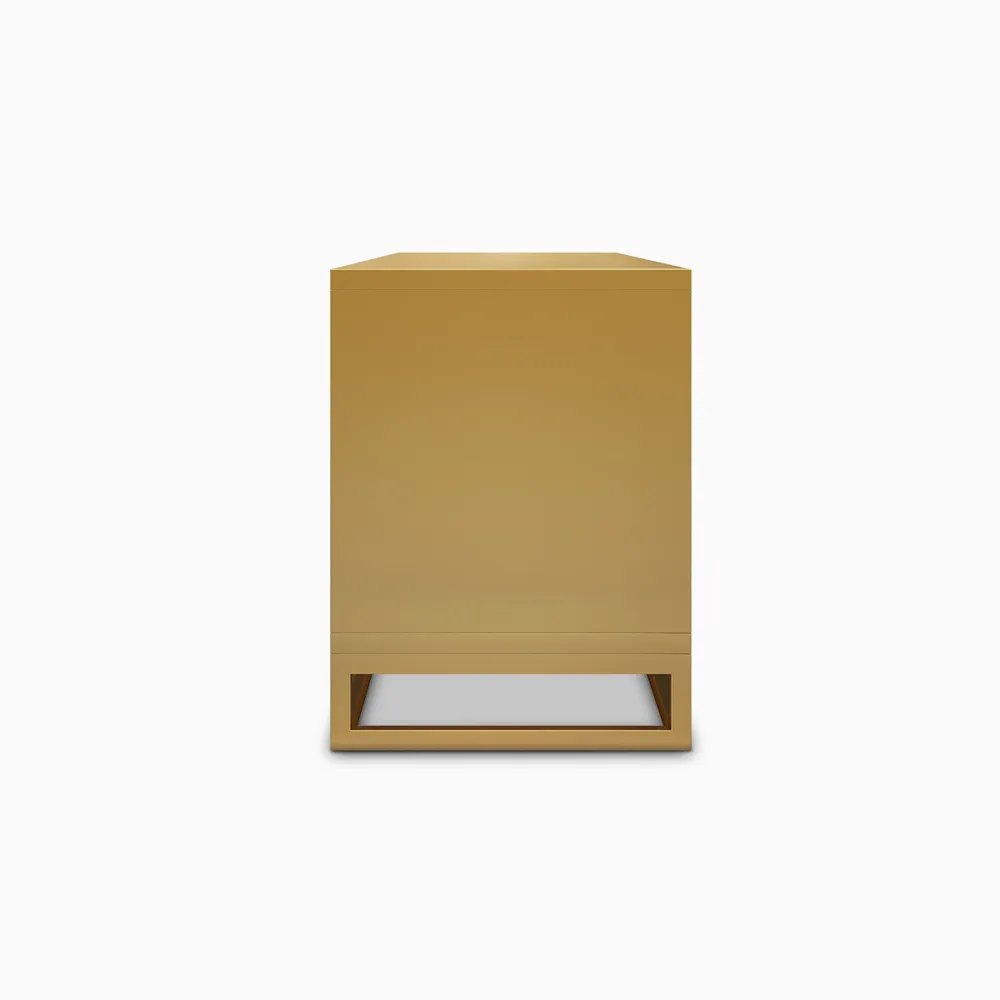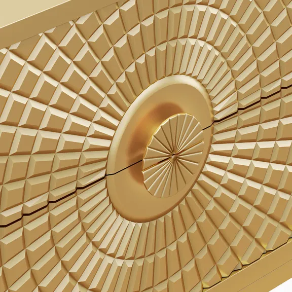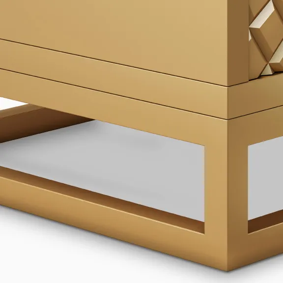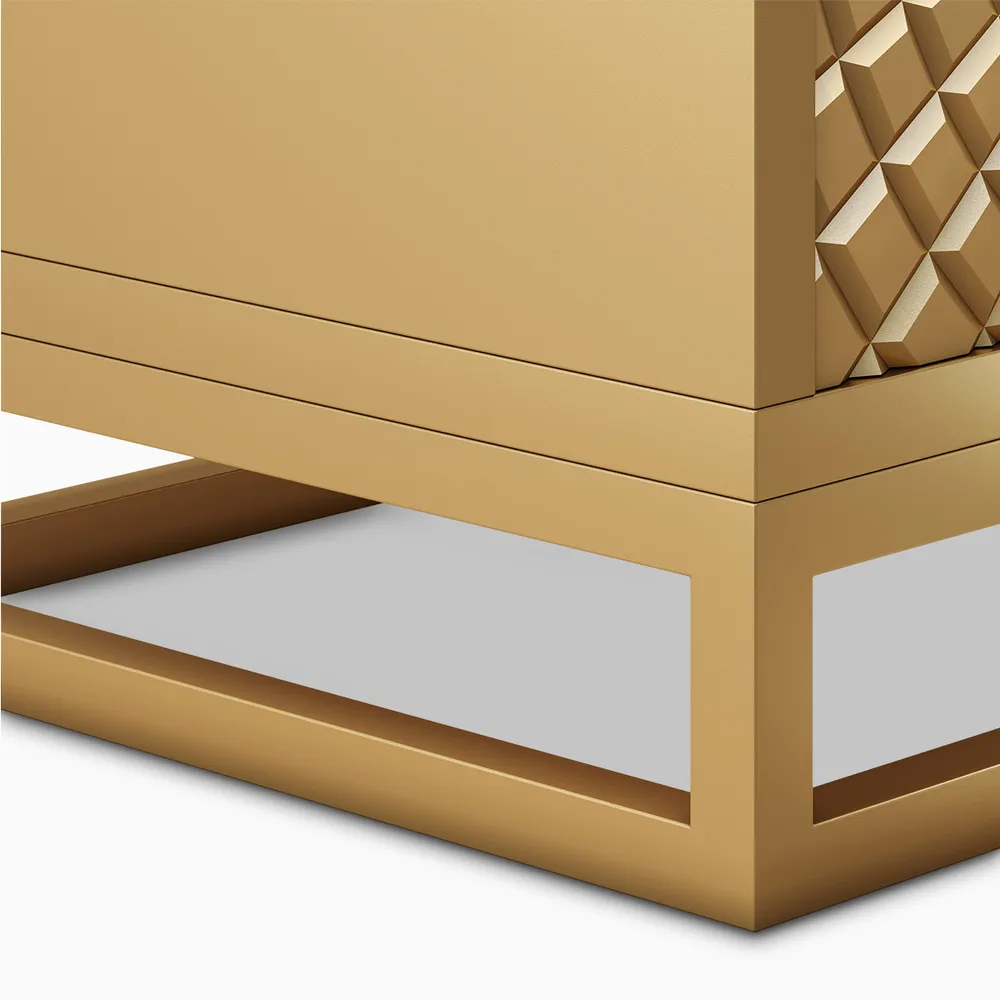 This stunning TV stand features an intricate geometric design on its doors, creating a striking focal point in any room. The golden finish adds a touch of luxury and elegance, making it not just functional but also a piece of art. With ample storage space inside, it combines beauty with practicality perfectly for modern living spaces.
