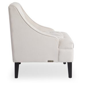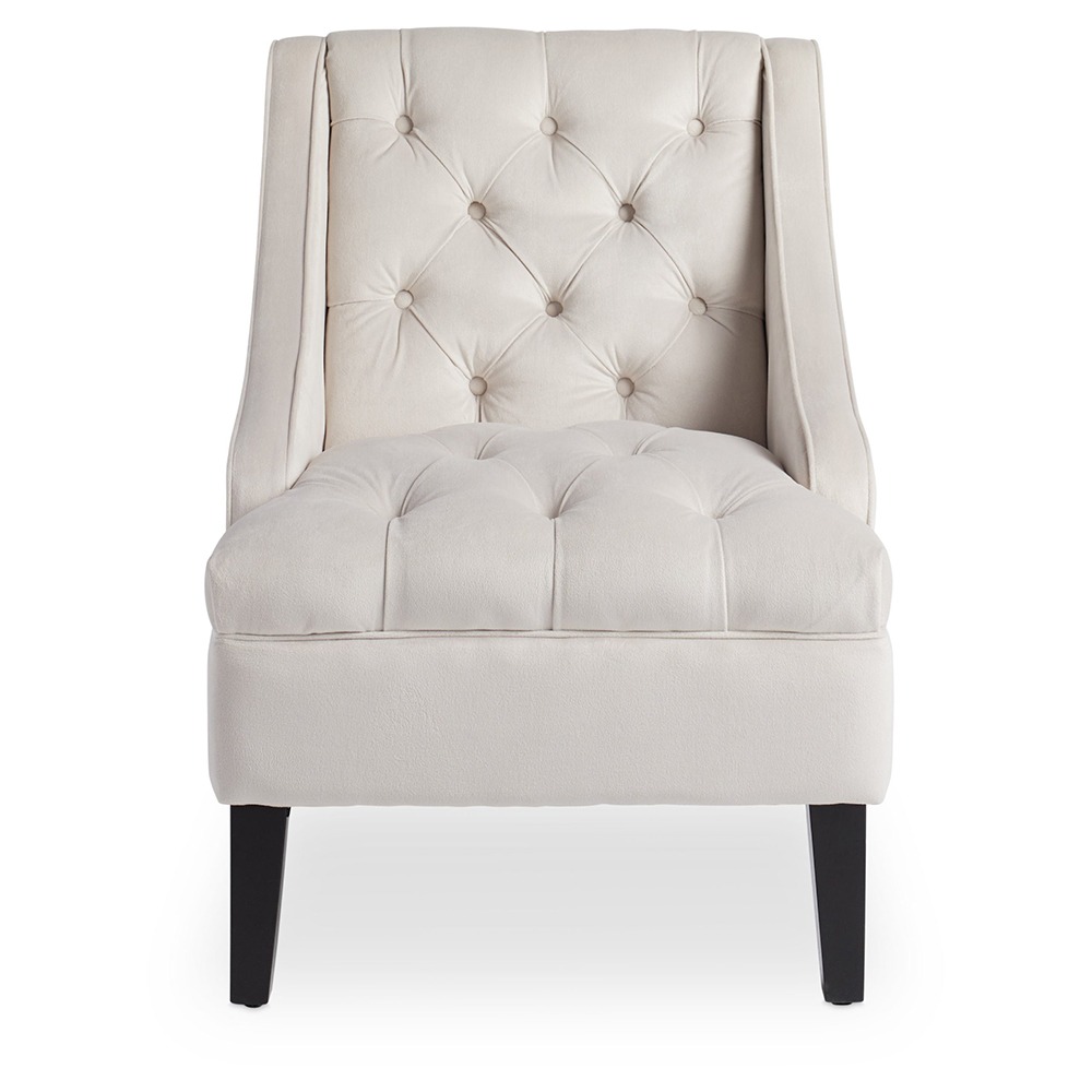 Add style and luxury to your living room, bedroom, craft room or anywhere else in your home. The gorgeous Laguna swoop chair features solid ivory-colored tufted upholstery that adds a trendy and stylish touch to any room. Upholstered in a variety of linen options, this chair features a diamond tufted back, MDF and solid wood construction, and rich espresso finished legs.