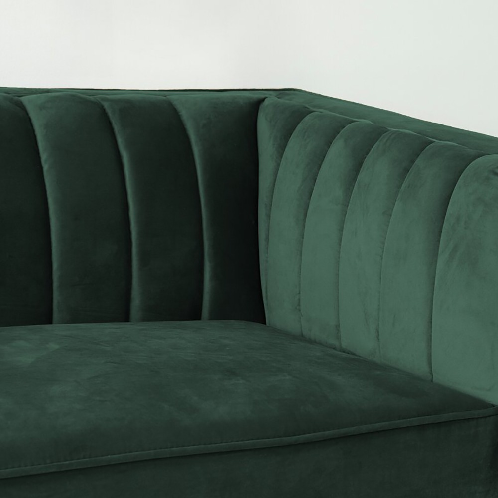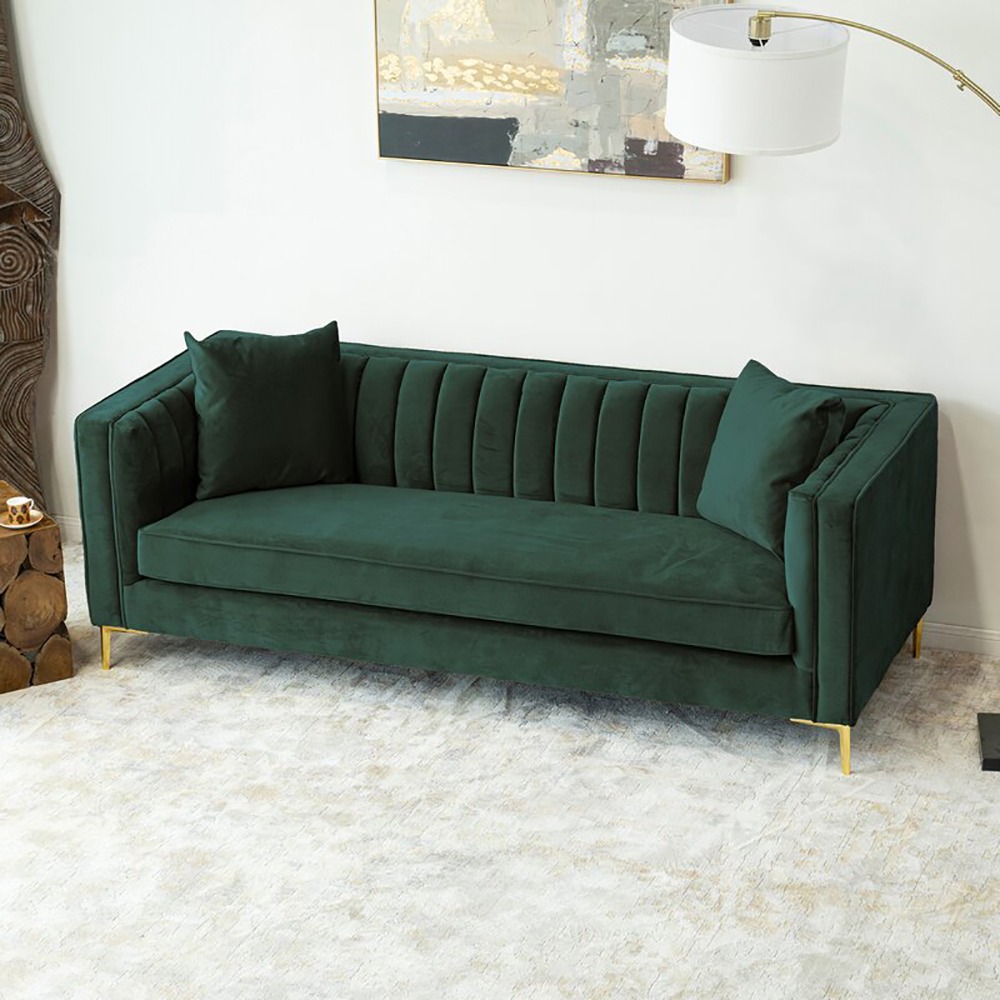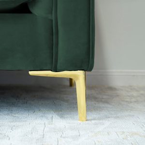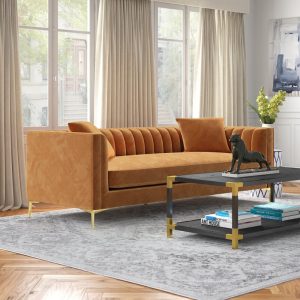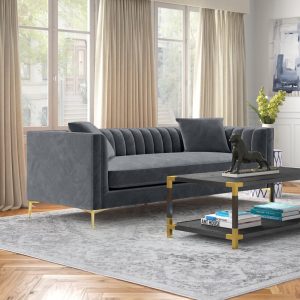 This sofa has a mid-century modern silhouette that’s sure to add a retro-glam anchor to your living room. It’s built with a solid solid wood frame and features tuxedo arms and gold-finished metal bracket legs. The velvet upholstery adds a luxe look and is decorated with piped trim and channel tufting along with the back cushion and arms. Foam-filled cushions provide just the right amount of support as you sit.