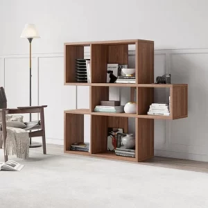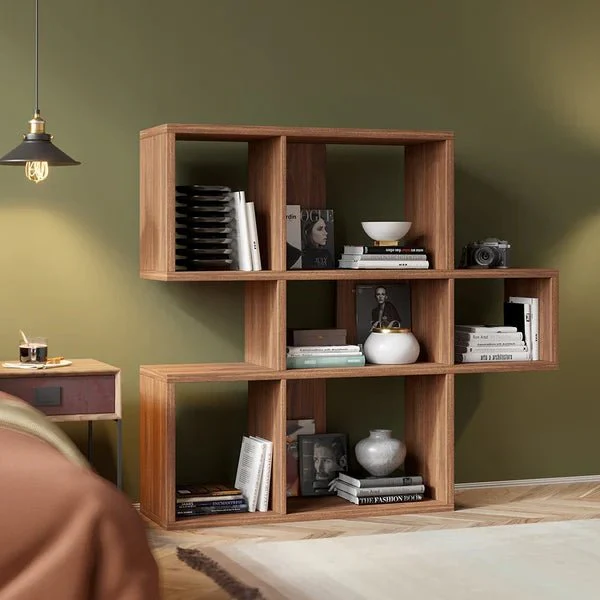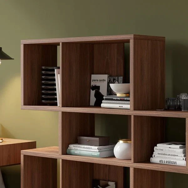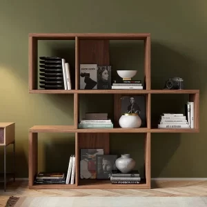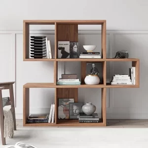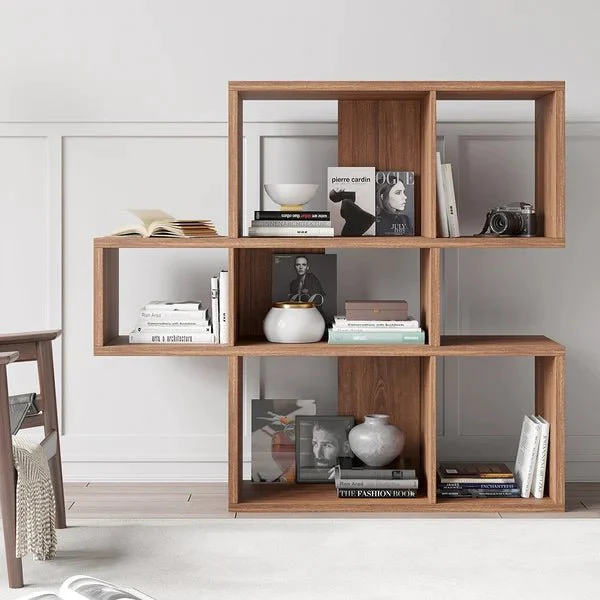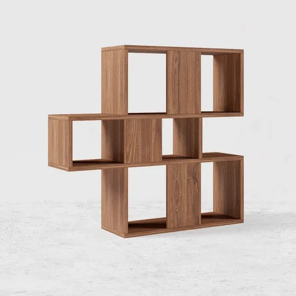 Transform your space with the sleek and sophisticated Book Case. Crafted with MDF walnut and a unique geometric design, this modern case offers versatile placement options with its two orientations. Three shelves provide ample storage for your belongings, making it perfect for any room.