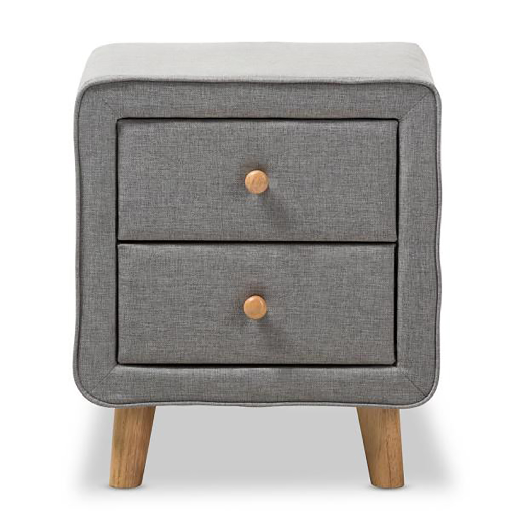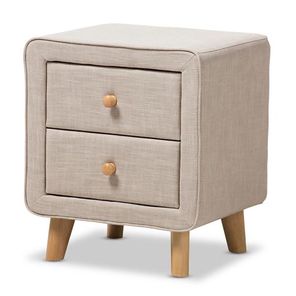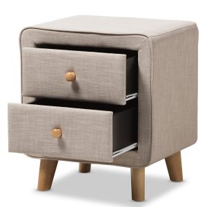 This Jonesy 2-Drawer Mid-Century Fabric Nightstand featuring a clean and luxury look and adding more charm in you bedroom. Update your bedside with this 2-Drawer Fabric Nightstand.