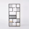 Introducing the luxurious Kai Book Case. Crafted with white MDF, its unique geometric shape offers both style and function. With arched and rectangle designs, this modern piece is perfect for any elegant bedroom or living room, providing exclusive storage options. Elevate your space with this sophisticated addition.