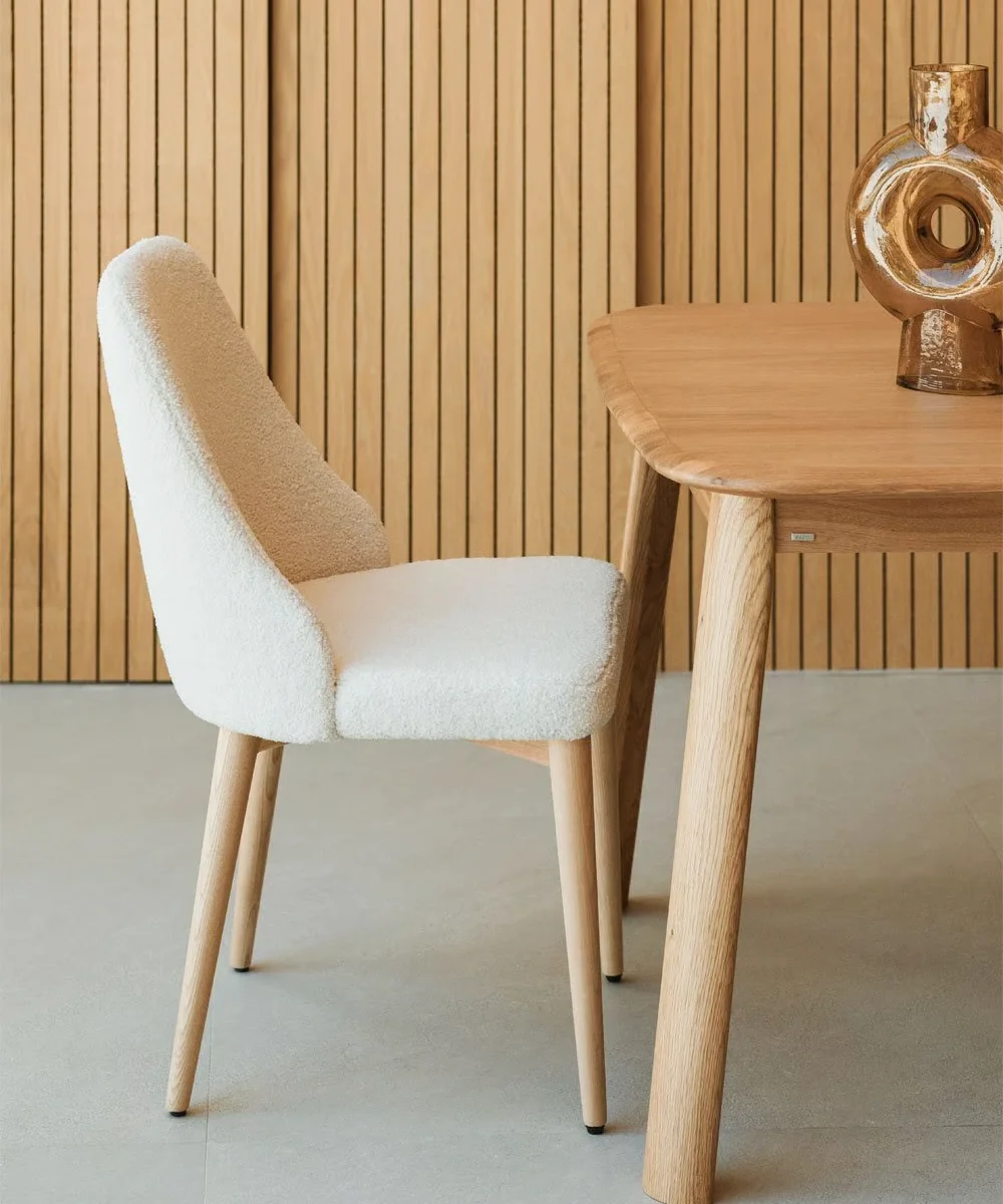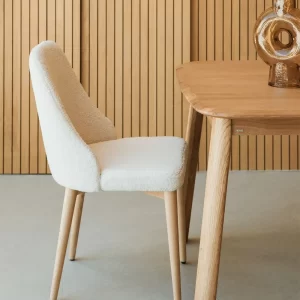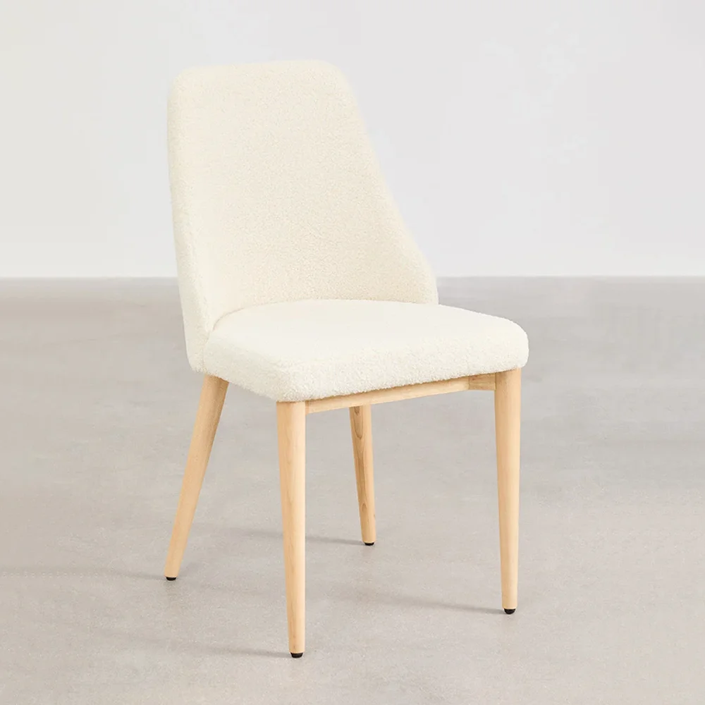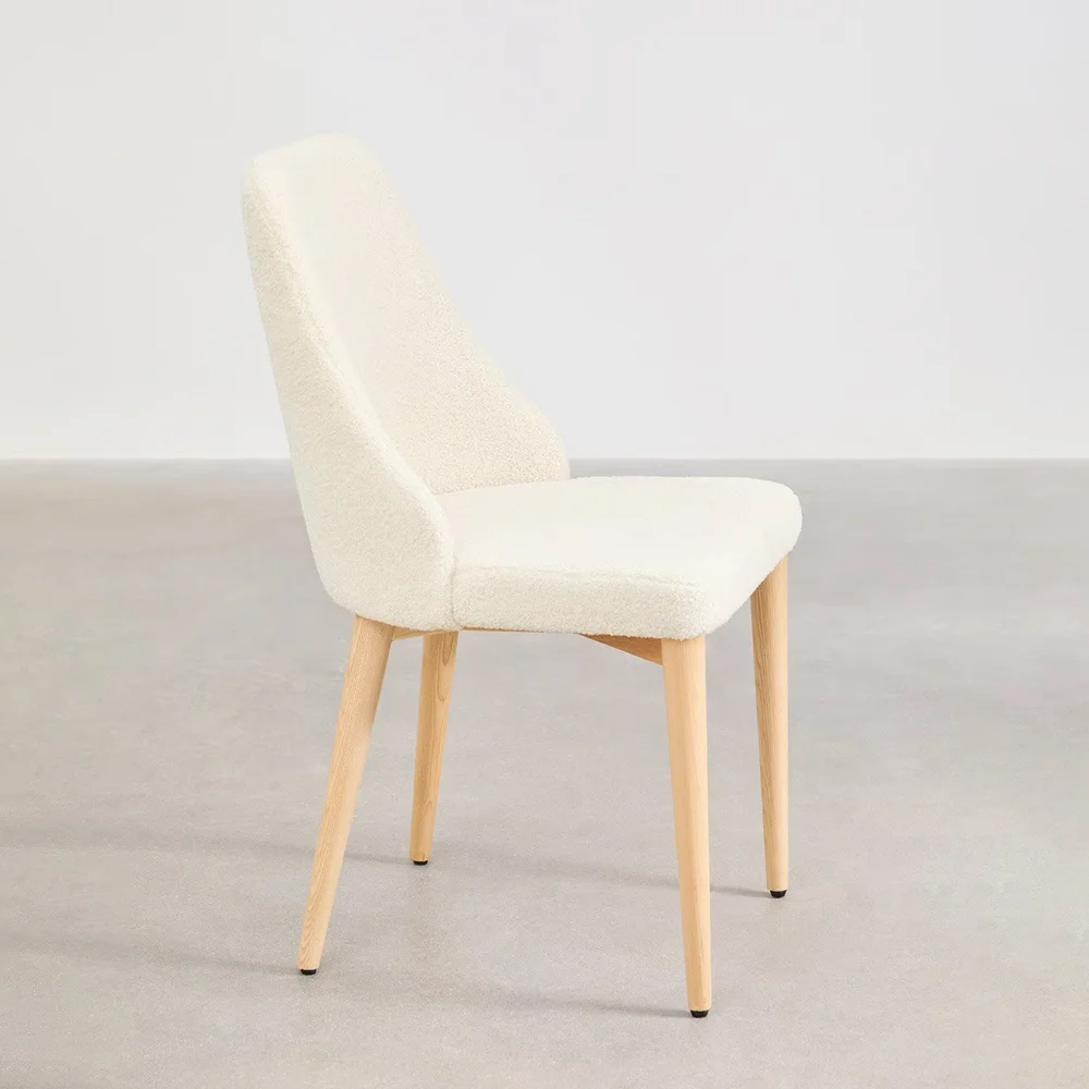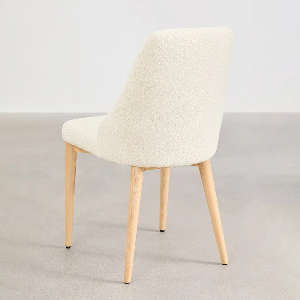 Find the perfect combination of comfort and style with this Leonid Upholstered Dining Chair that offers a soft and welcoming texture. Its internal structure is made of iron and its foam padding with a density of 34 kg/m³ provides extra comfort. With a seat and backrest upholstered in 100% polyester, it is ideal for daily use. The legs, made of ash wood , add a natural and warm touch to its design. In addition, they have plastic pads to protect your floors and ensure firmness without leaving marks on the floor. Not only does it stand out for its aesthetics, it has also been designed with well-being and durability in mind. The high backrest provides good back support, allowing you to enjoy long dinners with family or friends. Perfect for modern style combinations, Leonid chair will fit perfectly into any environment, adding elegance and well-being to your home.