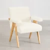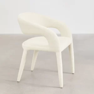 The Lev Dining Chair With Armrests blends style and comfort seamlessly. Its bouclé fabric and minimalist design adapt to any decor.