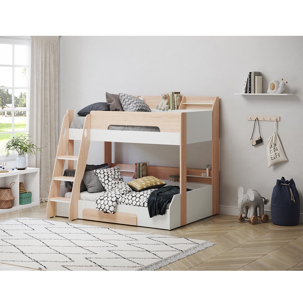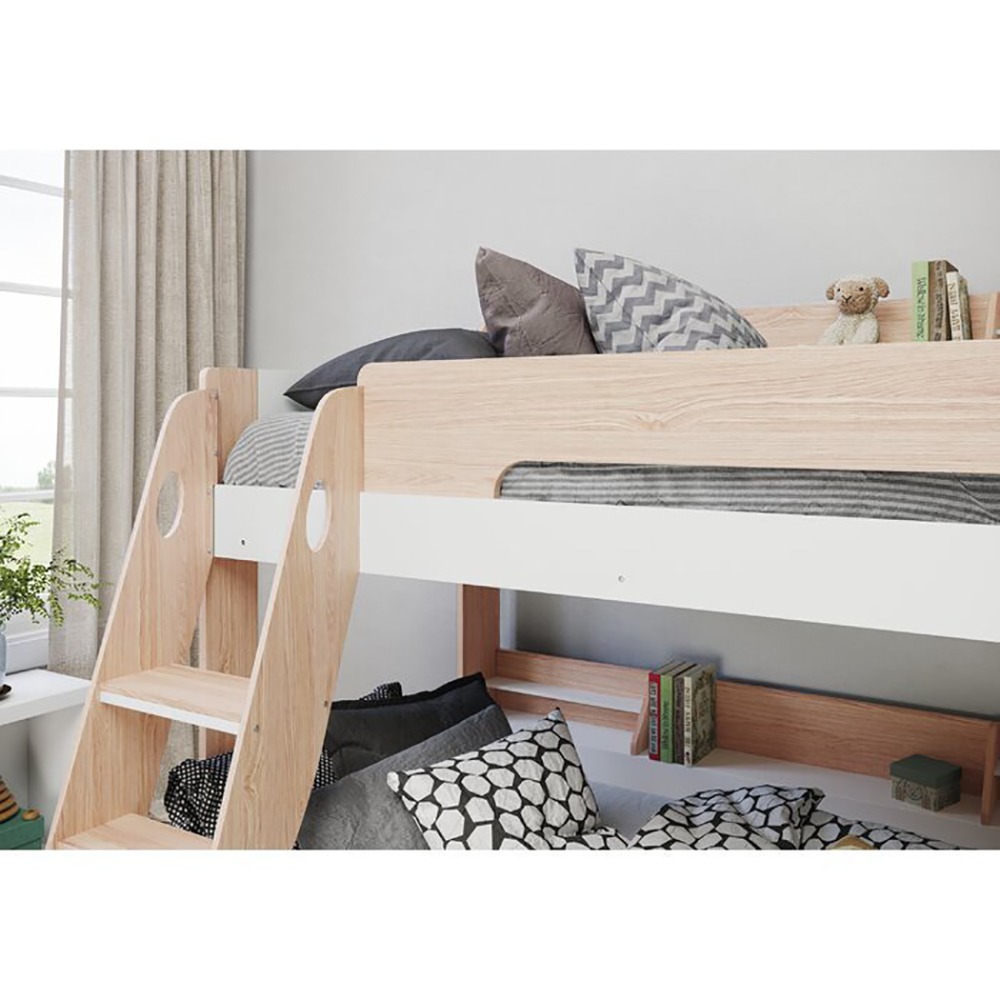 The bunk bed is a great option for a children’s room or a teenager with a modern style. The piece boasts a spacious bookshelf that will surely fit all textbooks and books, as well as a built-in desk and door shelf so you don’t have to buy extra furniture for the child’s bedroom. It also features a wardrobe for your child’s clothes. The loft bed is extremely safe and is a lovely retreat for your child.