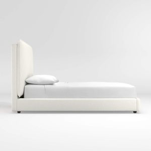 Modeled after our serene Lotus sofa, this Tall Head Board Bed finds the perfect balance of clean lines and soft simplicity for the modern bedroom. With upholstered rails, a pillow-cushioned headboard, and flange tailoring, the bed has a casual look that invites reading, reclining and, of course, sleeping.