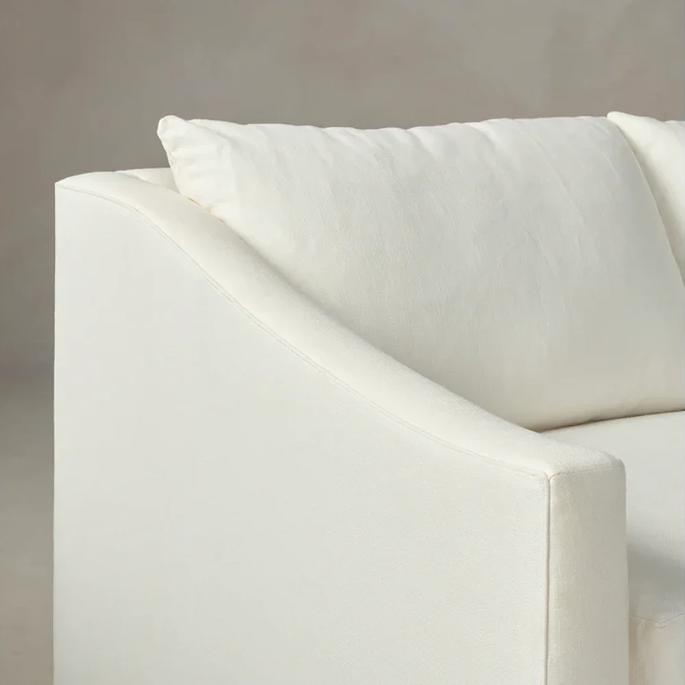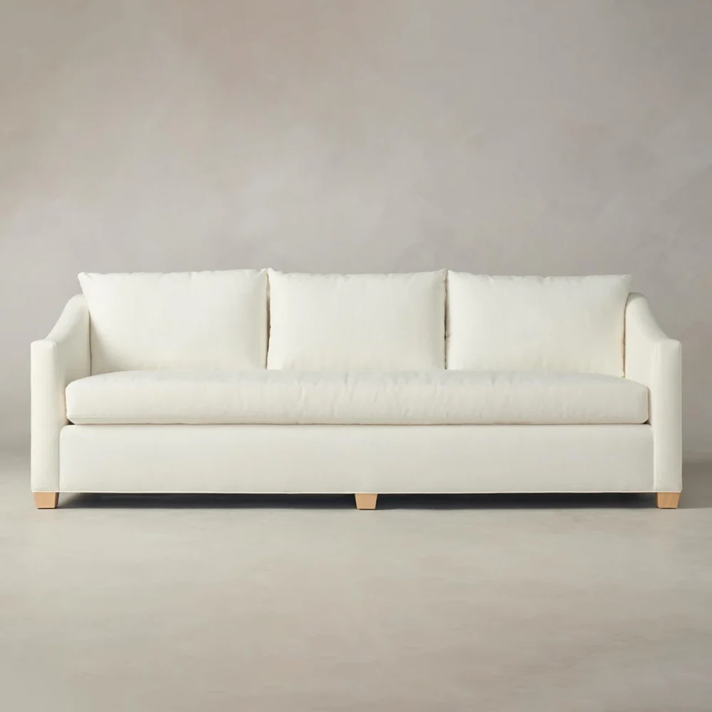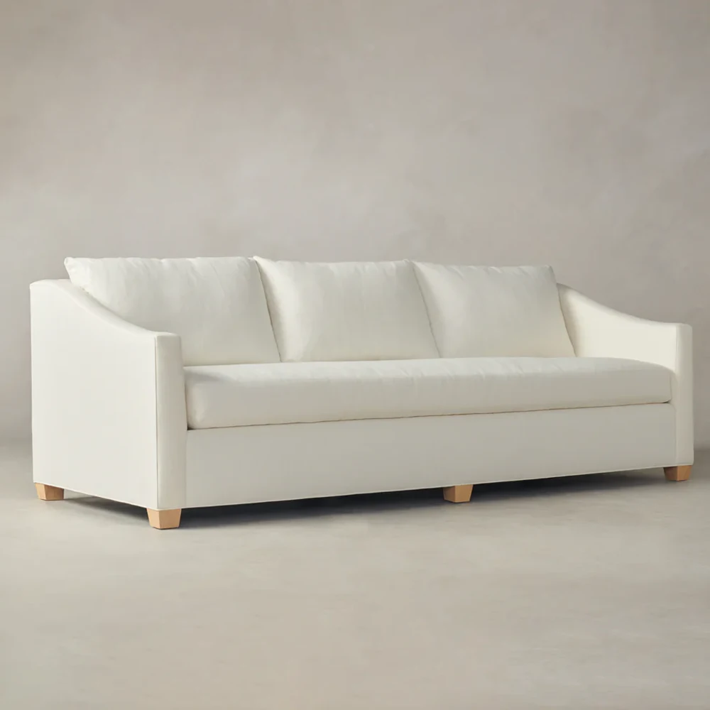 he Sullivan sofa combines modern elegance with classic charm, making it a timeless centerpiece. Its deep seat offers inviting comfort, while gracefully sloped shelter arms enhance its refined design. Striking trapezoidal legs add bold, contemporary flair.