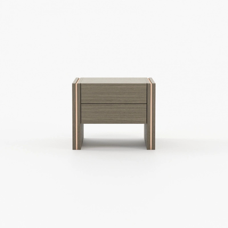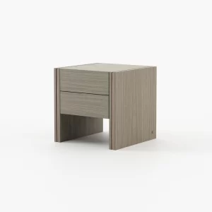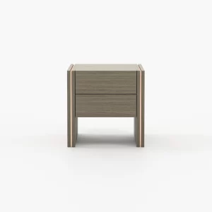 Every piece that composes it reveals quiet luxury and emphasizes comfort. The elegant colors complement each other, resulting in two cohesive separate home divisions.Macala bedside table is the embodiment of understated luxury. It features two drawers, fulfilling any storage needs and it’s customizable in many materials.