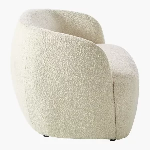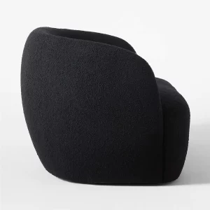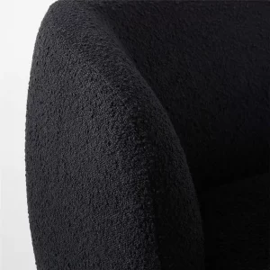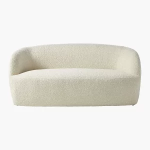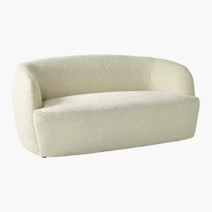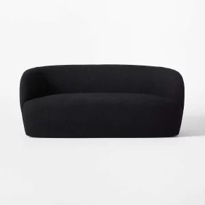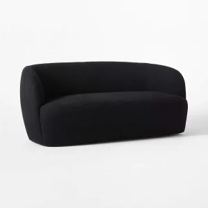 We’re taking the compromise out of the equation with chic furniture that’s to be lived in and loved.” Covered in a rich, textural boucle-like fabric, the loveseat feels slightly vintage with a mod silhouette that highlights the high-end upholstery.