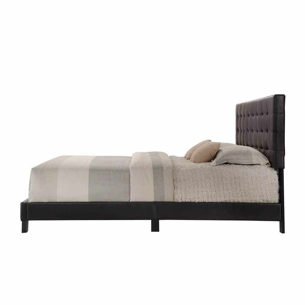 Redesign your bedroom around the classic style of this platform bed. Made from espresso-colored polyurethane faux leather, the bed features a high headboard with button tufting for comfort. Home Mart care for your comfort and for your loved once, every side of the bed crafted beautifully and with care accordingly to the needs of the customers.