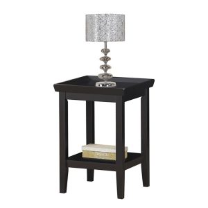 Bring the elegance to your living room with this contemporary end table. Two shelves complement the table top to provide plenty of open storage space.  This end table features a tray-like top, ensuring items don’t easily slide off the edge, and a handy shelf underneath provides a place for a glass of water, book, or media device. This accent table is made from solid plywood for durability with frequent use.