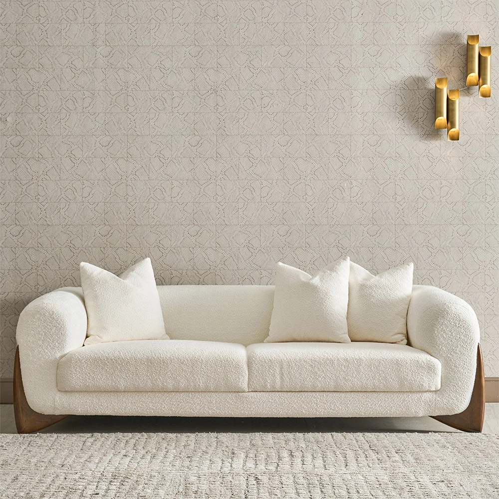 A minimalist aesthetic with maximum effect. Rich bouclé upholstery sits on a sculpted base with grained protruding details, shaping the Moira Sofa Set into a pared back silhouette with soft edges and sink-in comfort. Modern, chic, and undeniably inviting – this contemporary 4-piece set crafts a unique artistic vision and signature subtlety that never goes out of style.”