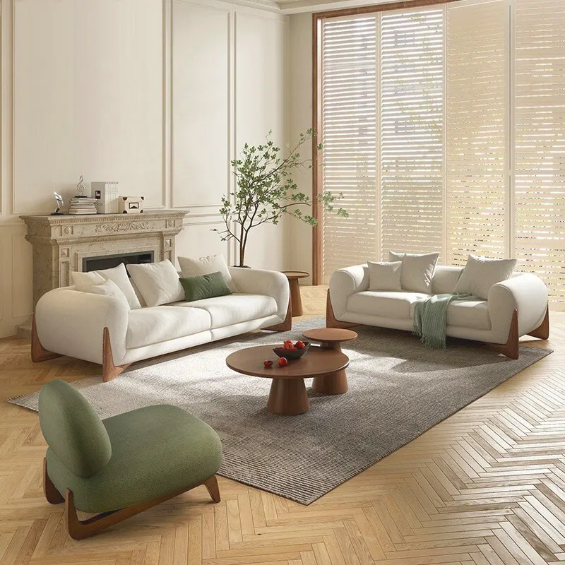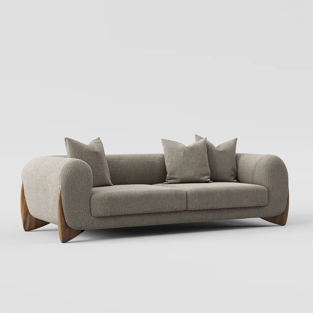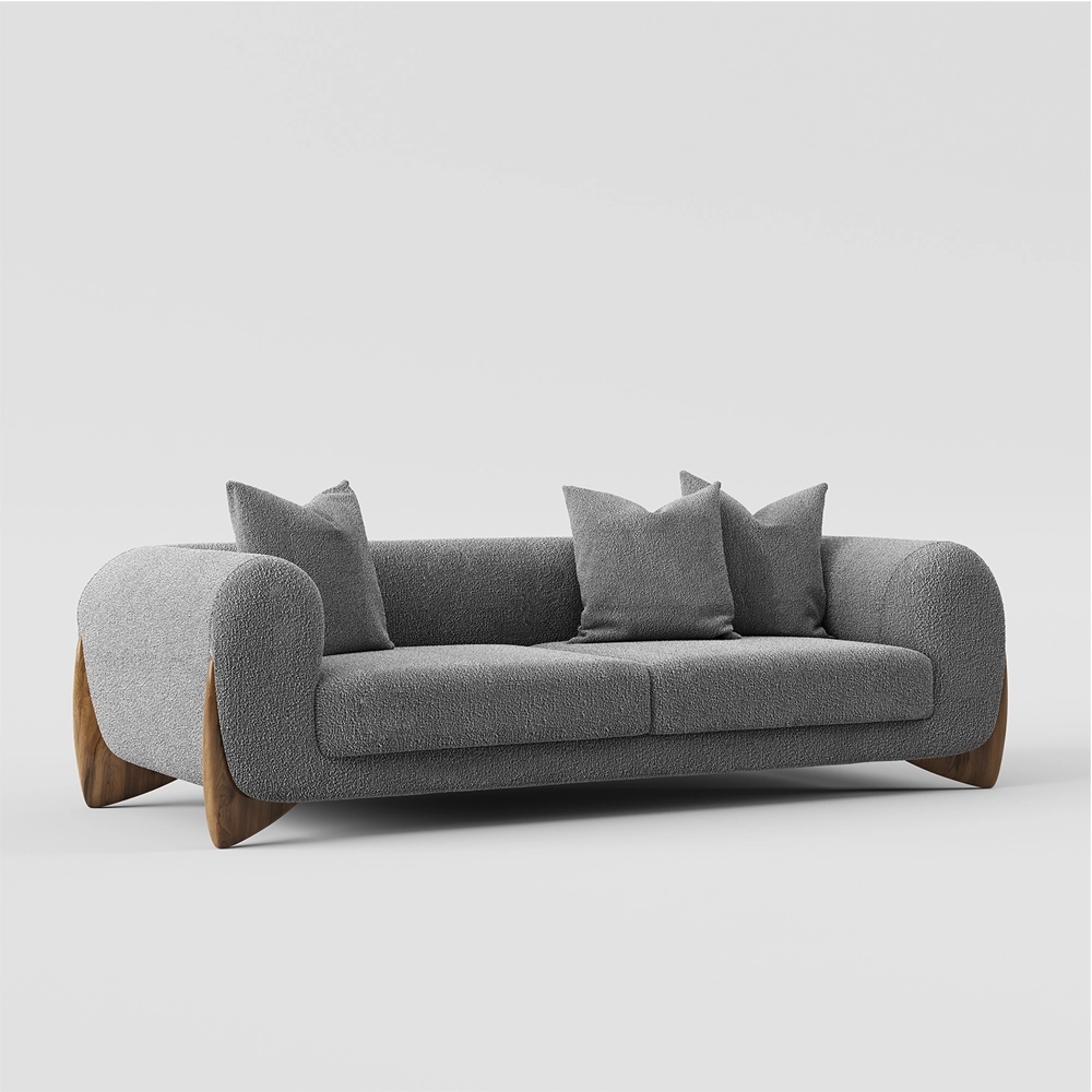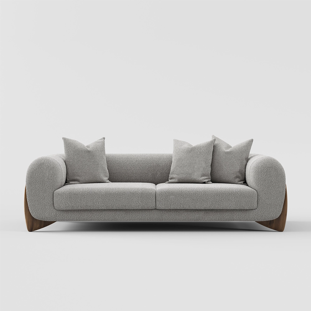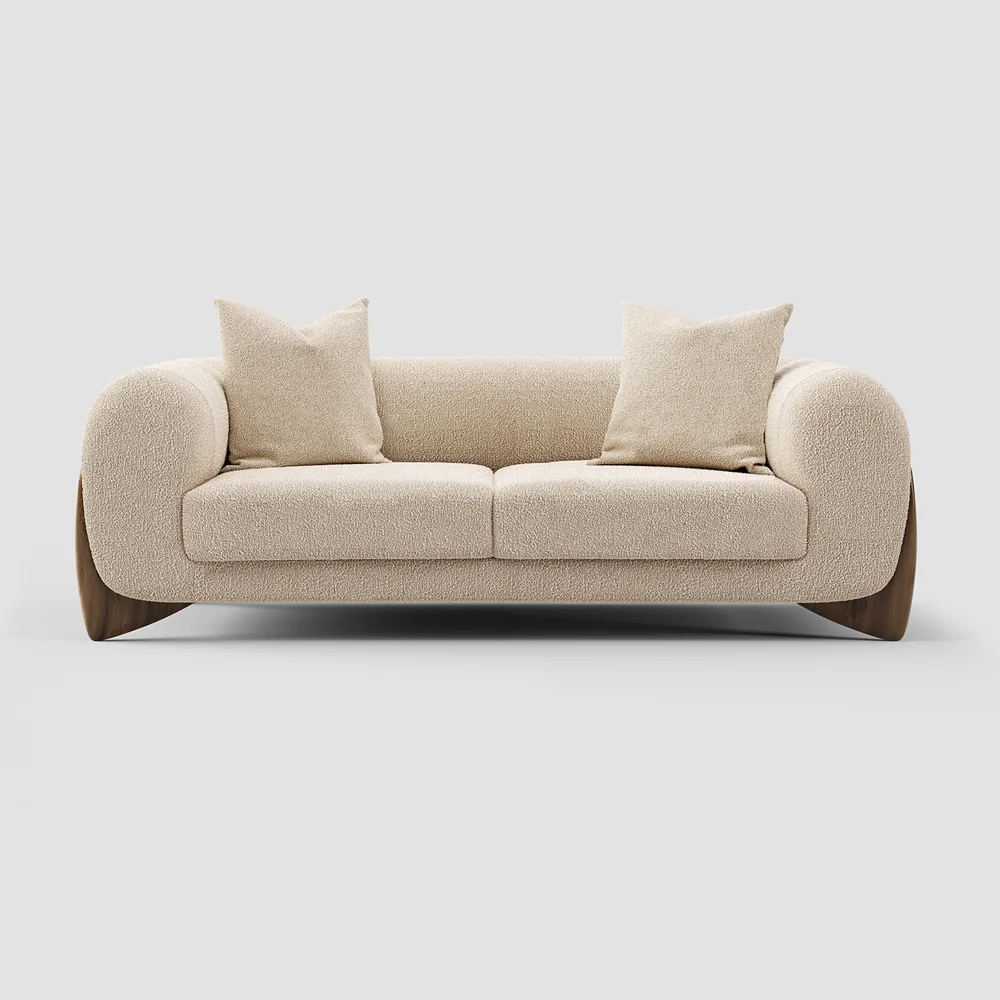 Minimalist aesthetic with maximum effect. Rich bouclé upholstery sits on a sculpted base with grained protruding details, shaping the Miami Sofa Set into a pared back silhouette with soft edges and sink-in comfort.