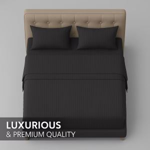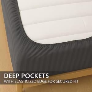 Home Mart Outlet Striped Microfiber Fitted Sheet Set – King 180×200 cm – Dark Gray Color – 1 Fitted Sheet & 2 Pillowcases (50×75 cm) – Deep Pocket, Soft, Durable, Wrinkle-Resistant Bedding Set